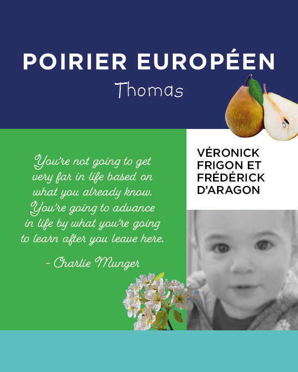 L’implantation de ce projet a été possible grâce à des commanditaires qui ont contribués financièrement en adoptant un arbre pour la vie! Tous les commanditaires sont membres à vie du Verger de Généreux et peuvent participer aux différents événements dont le Grand Réveil Printanier. En plus des invitations aux différentes formations, chaque année les membres de la communauté des généreux sont invités à participer aux activités de cueillette et ont droit à un panier des récoltes. Il est encore possible de participer au programme « Adoptez un arbre pour la vie ». Contactez-nous si vous souhaitez obtenir plus d’informations à ce sujet.